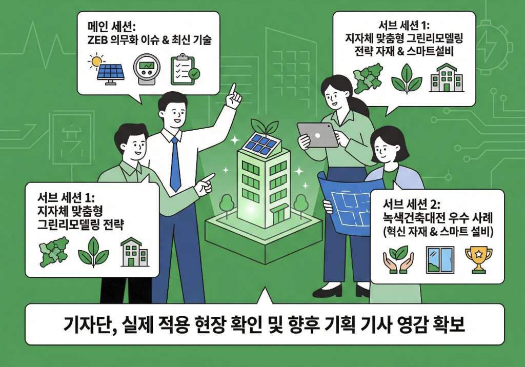 이어 서브 세션으로 진행된 ‘지자체 녹색건축 정책토론회’와 ‘녹색건축대전 수상작 발표회’ 역시 큰 시사점을 남겼다. 정책토론회에서는 각 지역 특성에 맞춘 맞춤형 그린리모델링 보급 확산 전략이 논의되었으며, 수상작 발표회에서는 혁신적인 친환경 자재와 스마트 설비가 적용된 실제 우수 건축 사례들이 이목을 집중시켰다. 도면 속 기술이 실제 삶의 공간으로 구현된 모습을 직접 확인한 기자단은 향후 기획 기사 작성을 위한 구체적인 영감을 얻을 수 있었다.