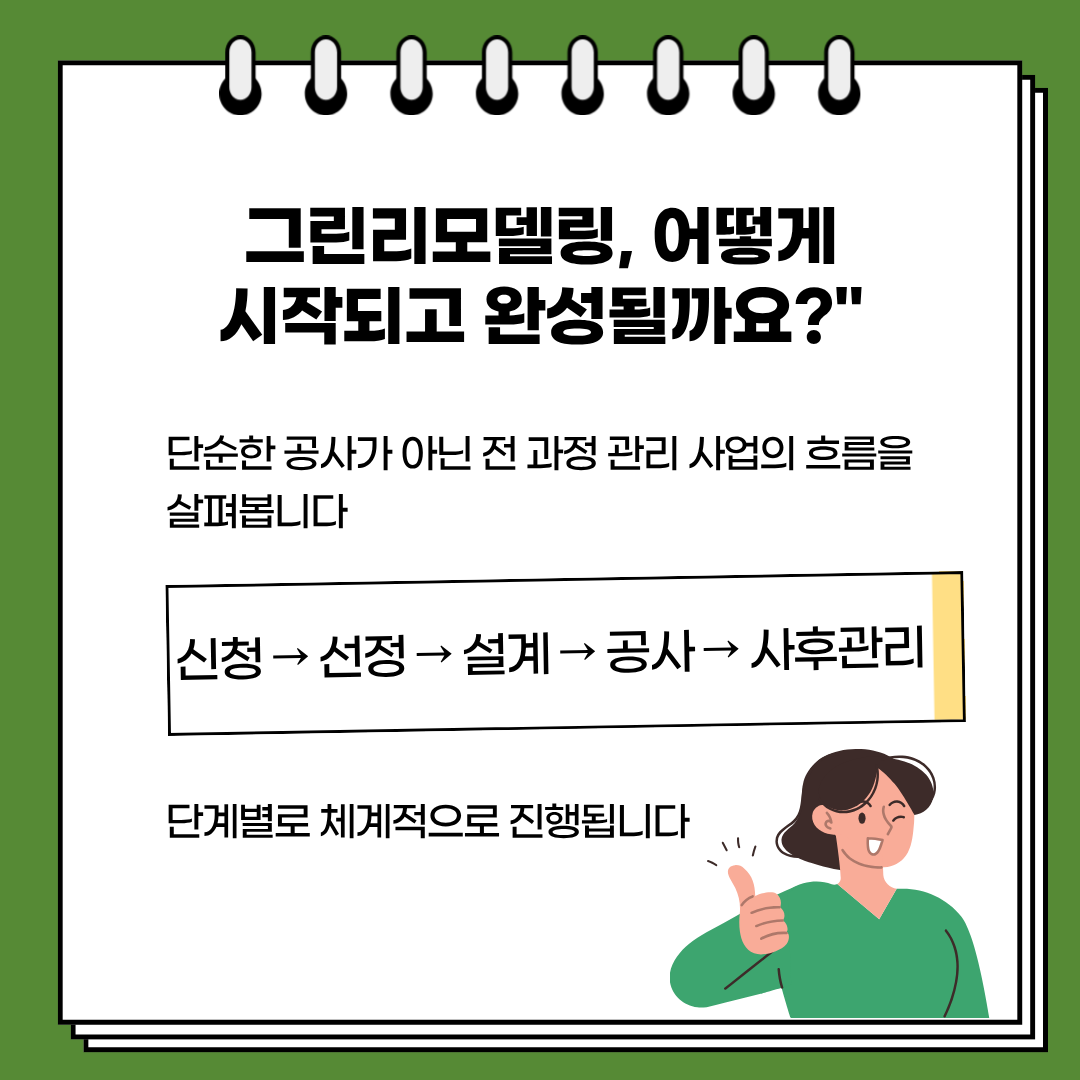 [카드뉴스] 그린리모델링 사업 절차 A to Z : 신청부터 사후관리까지 한 번에 이해하기