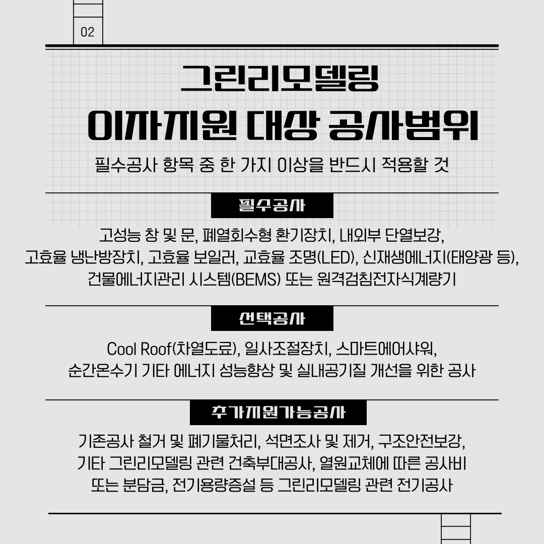 해당 지원 금액 이외에 에너지 성능 개선 공사비에 한하여 지원합니다.