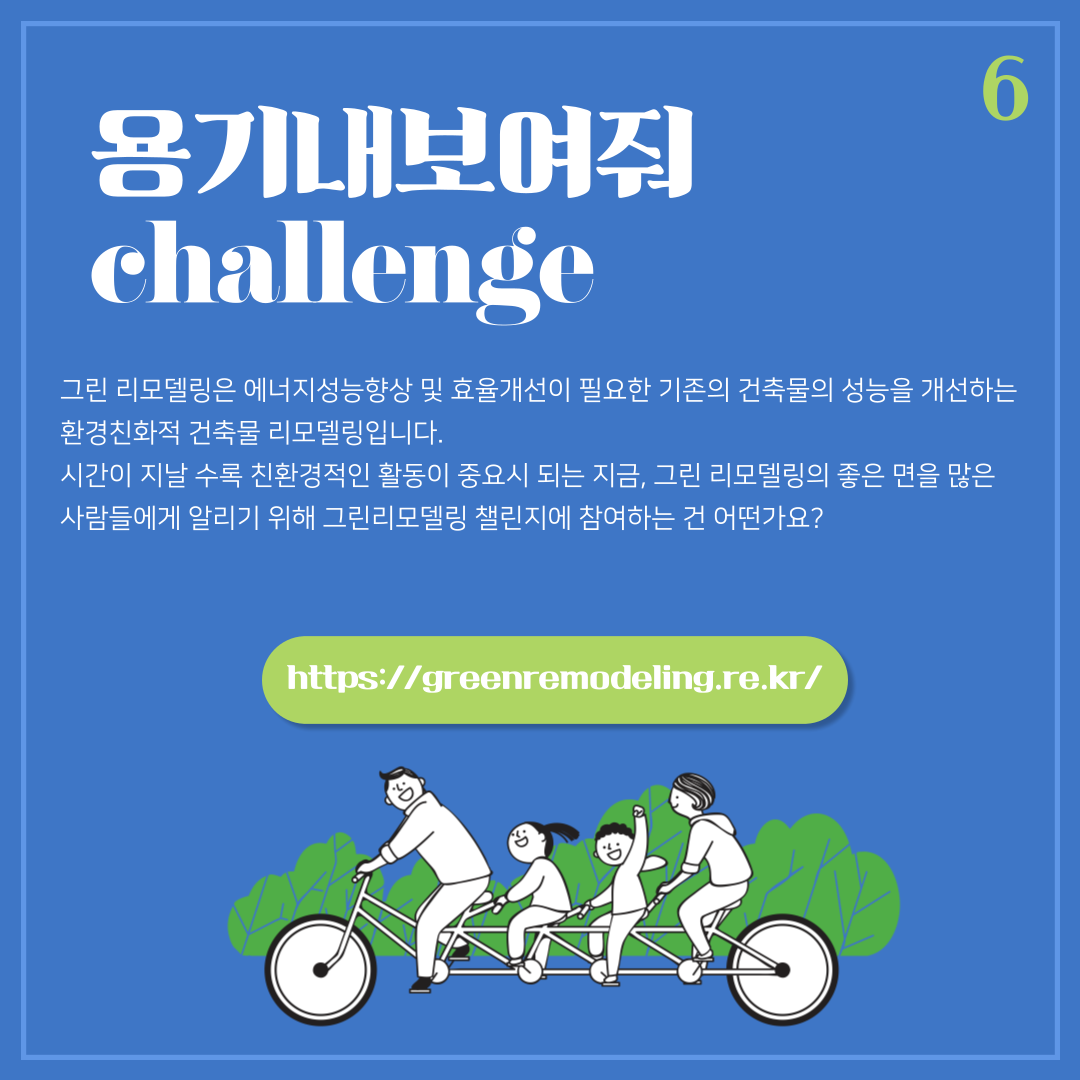위와 같은 방식으로 그린리모델링 챌린지에 참여할 수 있습니다!